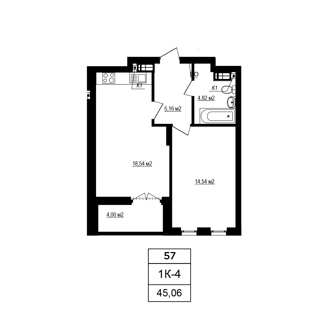 Plan 1 room apartment in the house on the Yablyneva st., 3-А (the 6th section) — #10.4