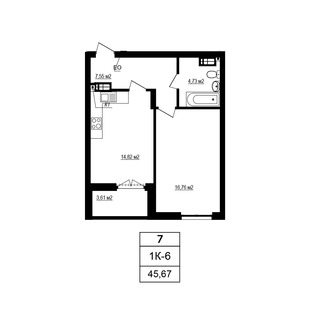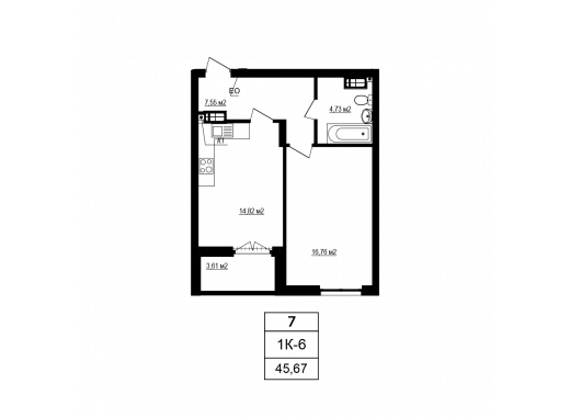 Plan 1 room apartment in the house on the Yablyneva st., 3-А (the 6th section) — #2.3