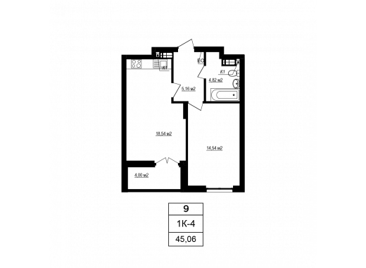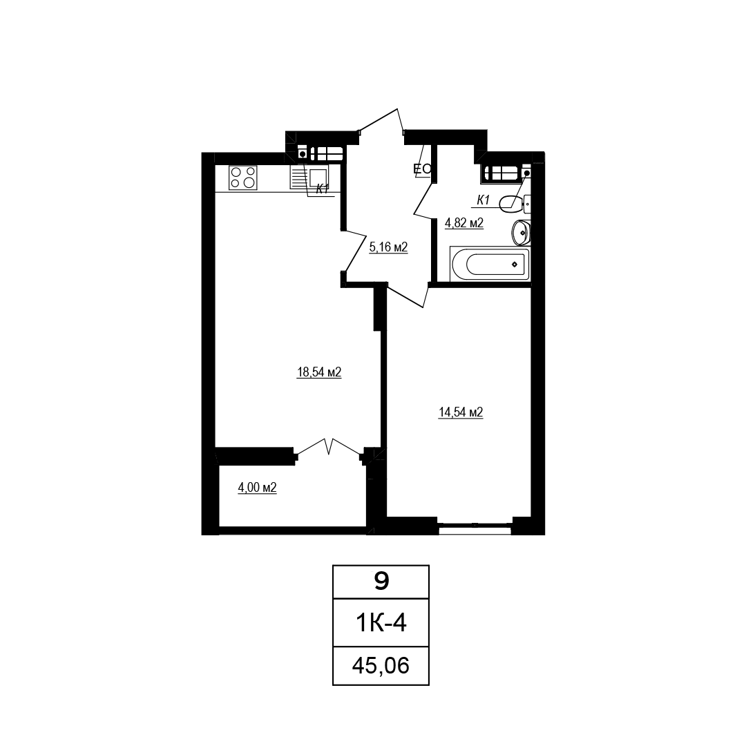 Plan 1 room apartment in the house on the Yablyneva st., 3-А (the 6th section) — #2.5