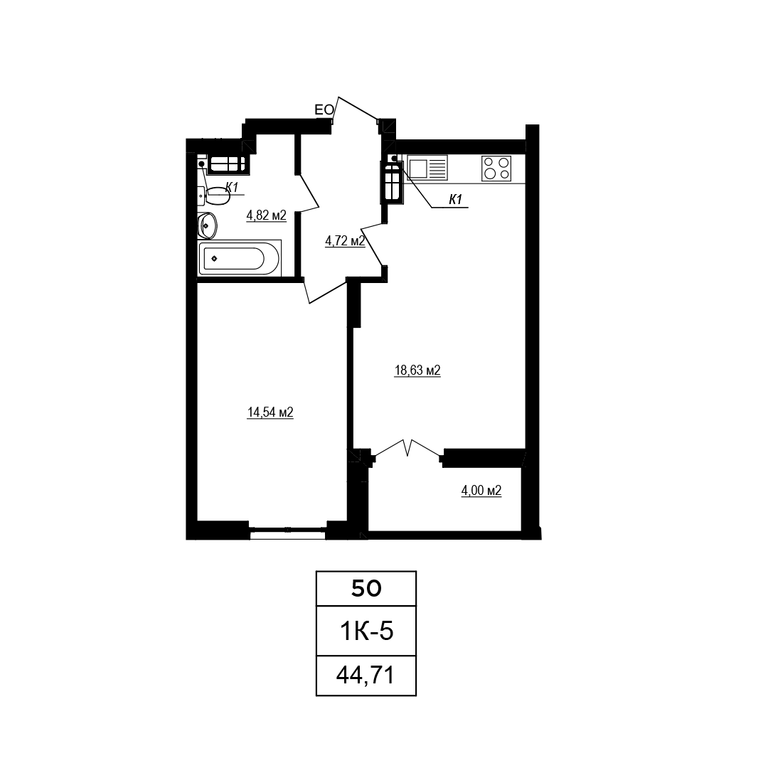 Plan 1 room apartment in the house on the Yablyneva st., 3-А (the 6th section) — #9.4