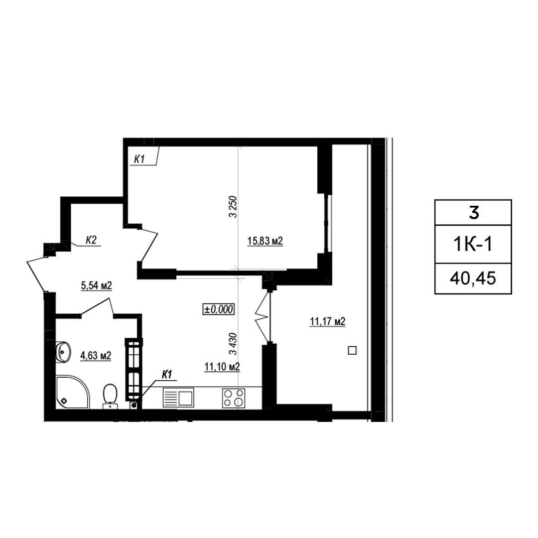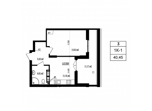 Plan 1 room apartment in the house on the Yablyneva st., 3-А (the 7th section) — #1.3