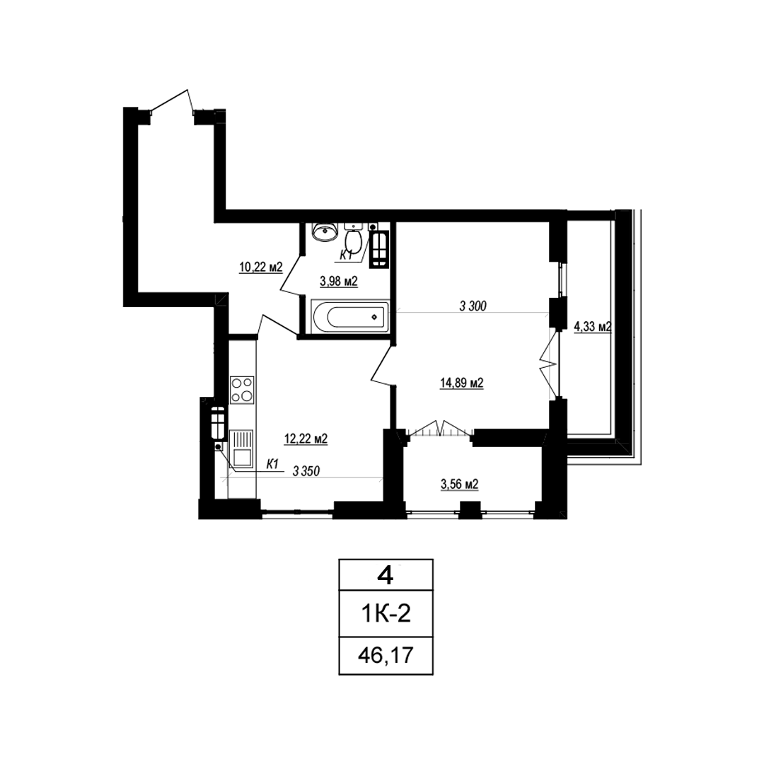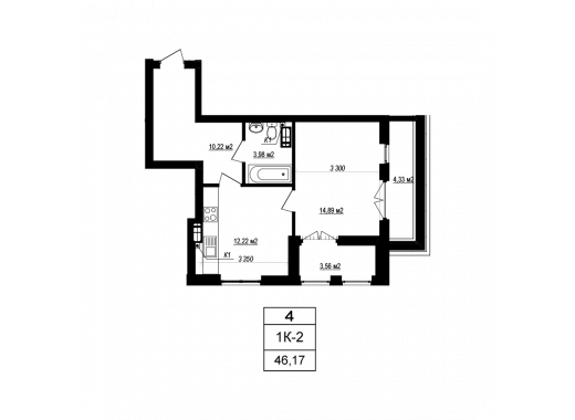 Plan 1 room apartment in the house on the Yablyneva st., 3-А (the 7th section) — #1.4