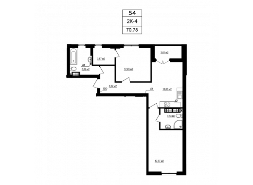 Plan 2 rooms apartment in the house on the Yablyneva st., 3-А (the 6th section) — #10.1