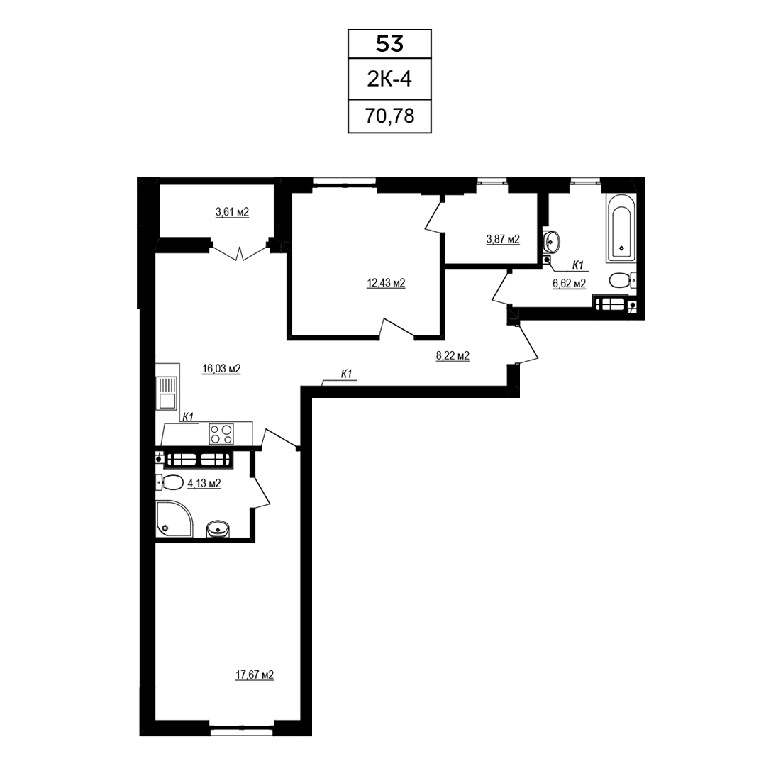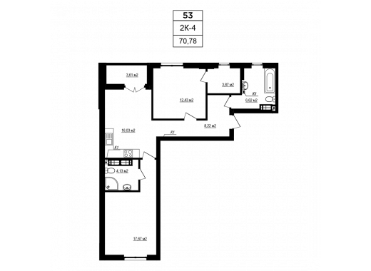 Plan 2 rooms apartment in the house on the Yablyneva st., 3-А (the 6th section) — #9.1