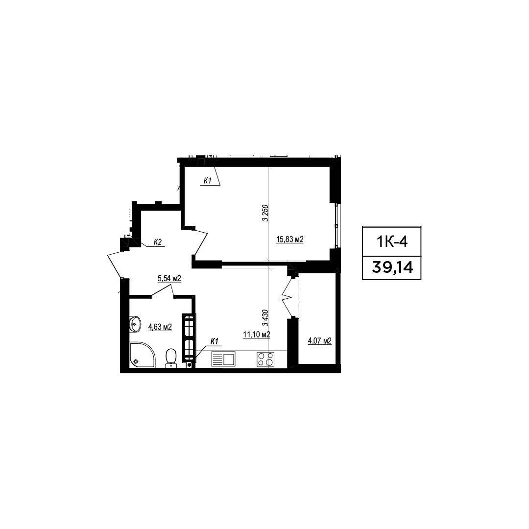 Загальна площа: 39.97 м2