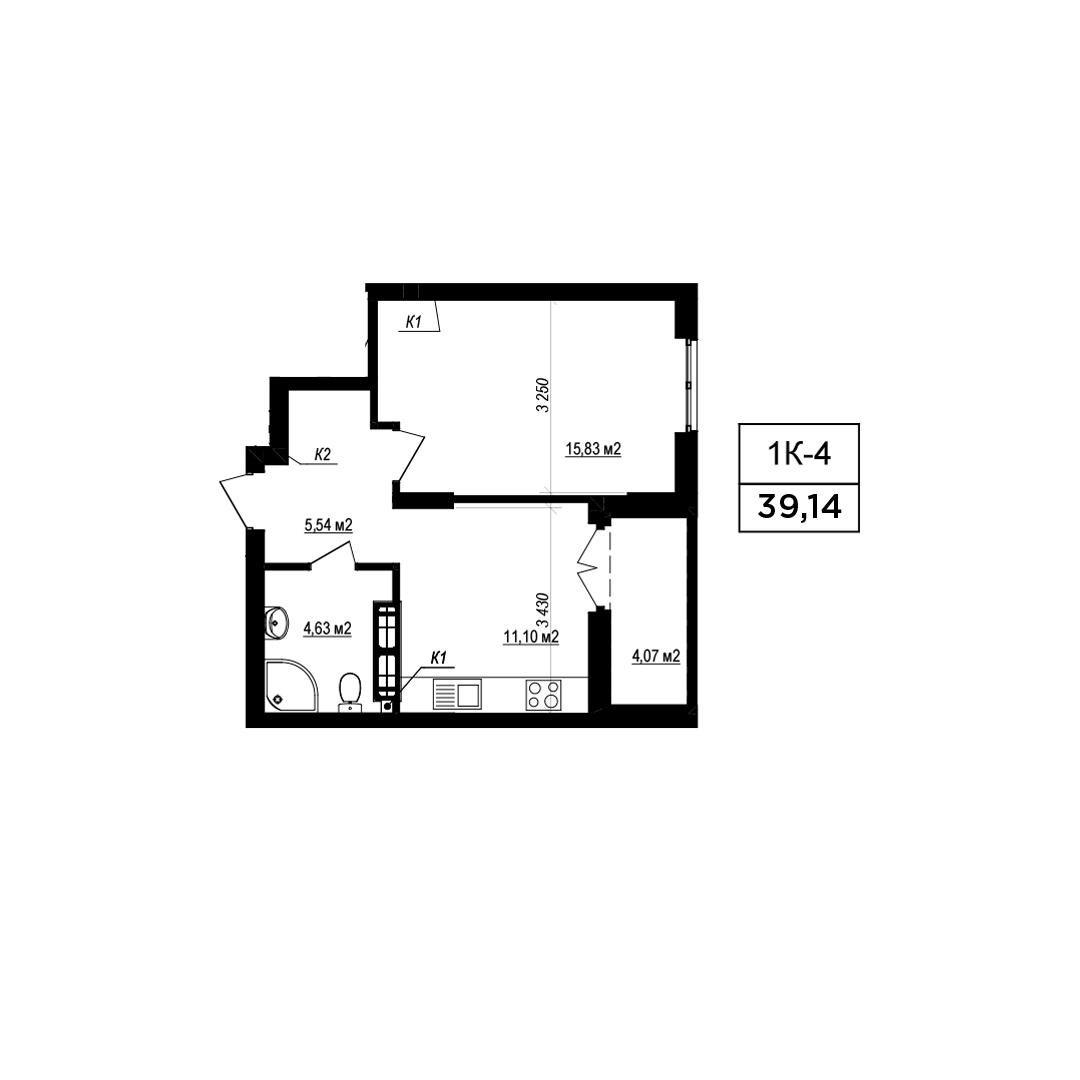 Загальна площа: 39.97 м2