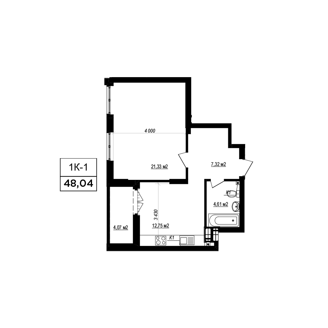 Планування 1 кімнатної квартири в будинку на вул. Яблунева, 3-А (7 секція) — №5.6