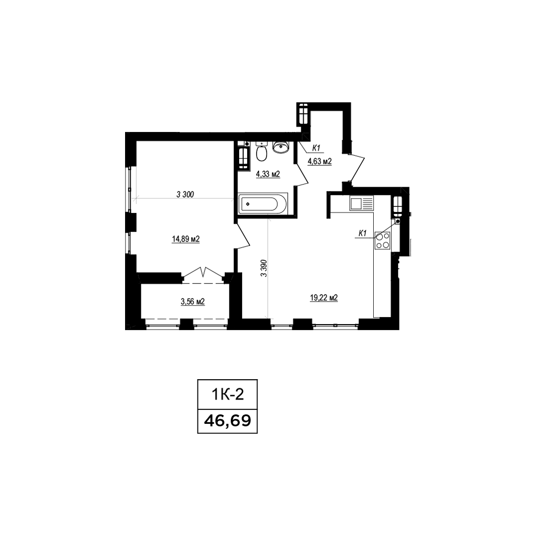 Загальна площа: 46.5 м2