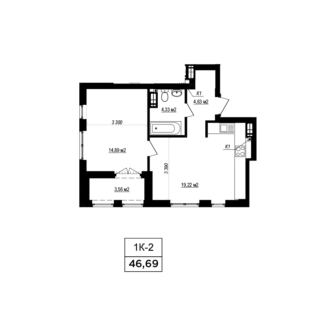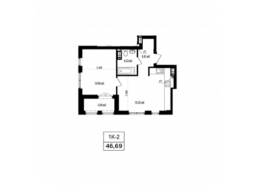 Планування 1 кімнатної квартири в будинку на вул. Яблунева, 3-А (7 секція) — №9.5