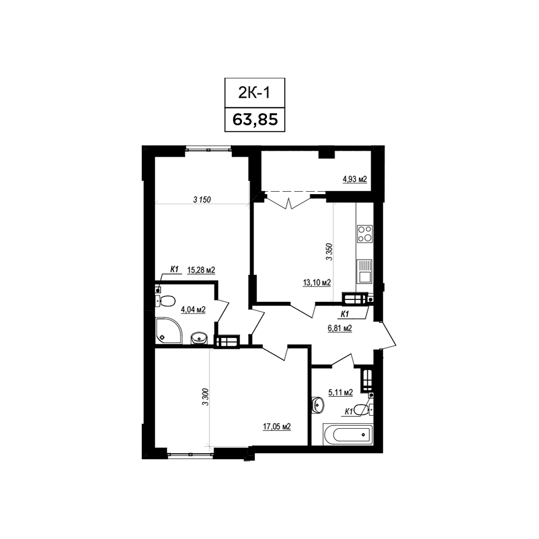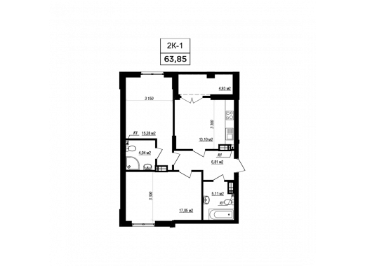 Загальна площа: 63.1 м2