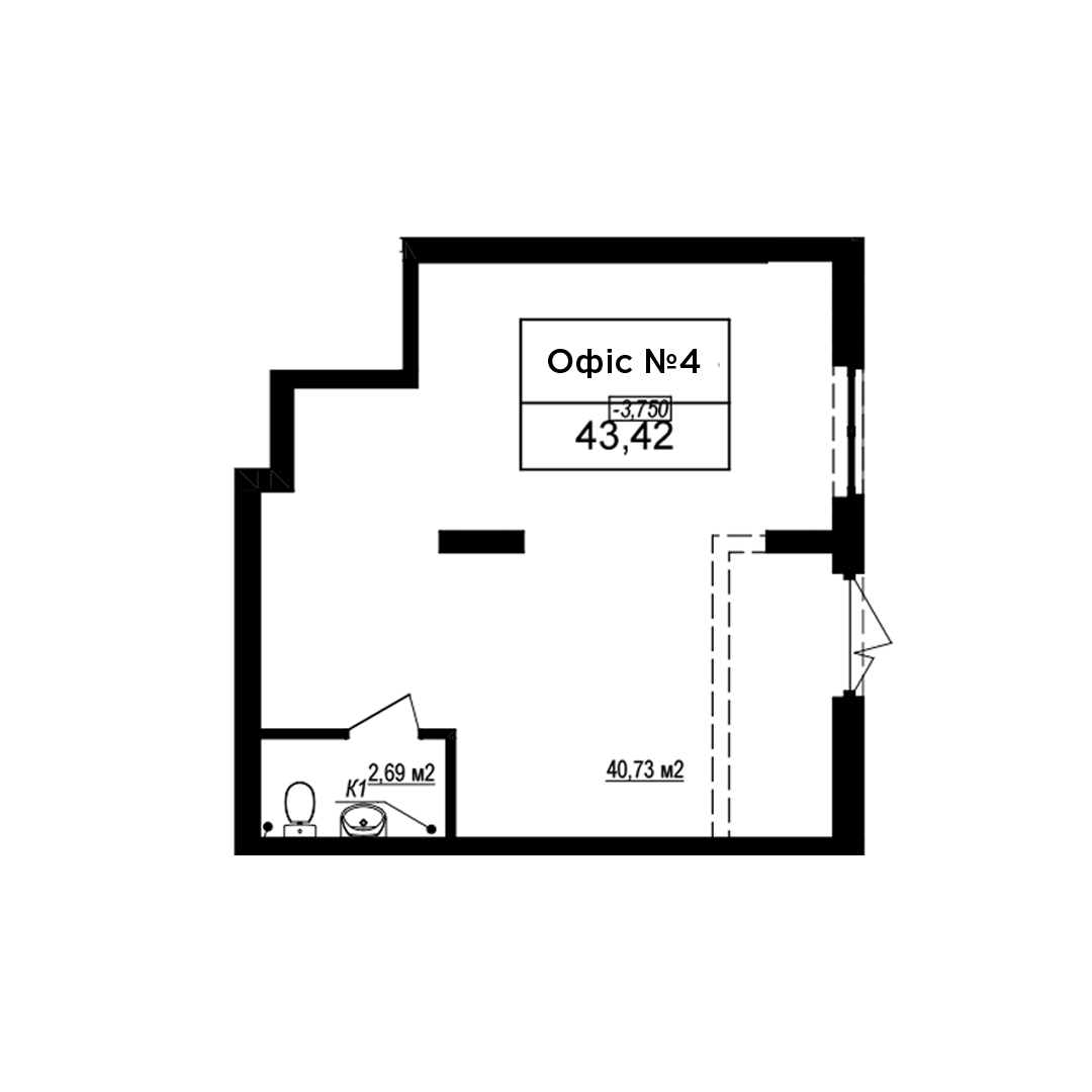 Загальна площа: 43.42 м2