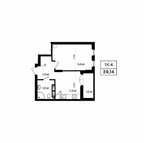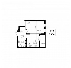 Тип планування: №11.3 Статус: В проєкті Кількість кімнат: 1 Загальна площа: 39.14 м2 Житлова площа: 15.83 м2