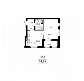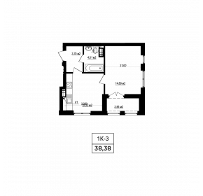 Тип планування: №9.4 Статус: В проєкті Кількість кімнат: 1 Загальна площа: 38.38 м2 Житлова площа: 14.89 м2