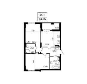 Тип планування: №11.1 Статус: В проєкті Кількість кімнат: 1 Загальна площа: 63.85 м2 Житлова площа: 32.33 м2