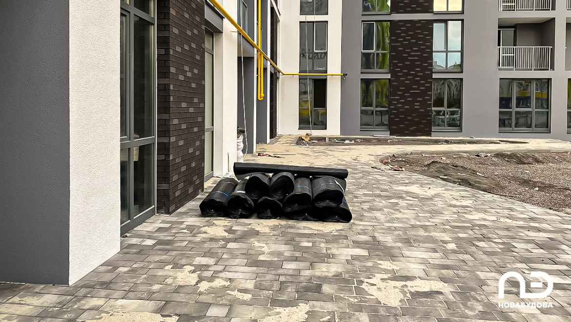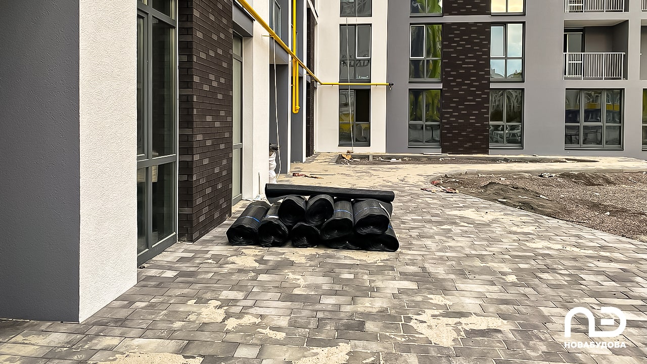 • триває гідроізоляція та роботи з благоустрою між 1 і 2 секціями, підготовка до облаштування підлоги паркінгу.