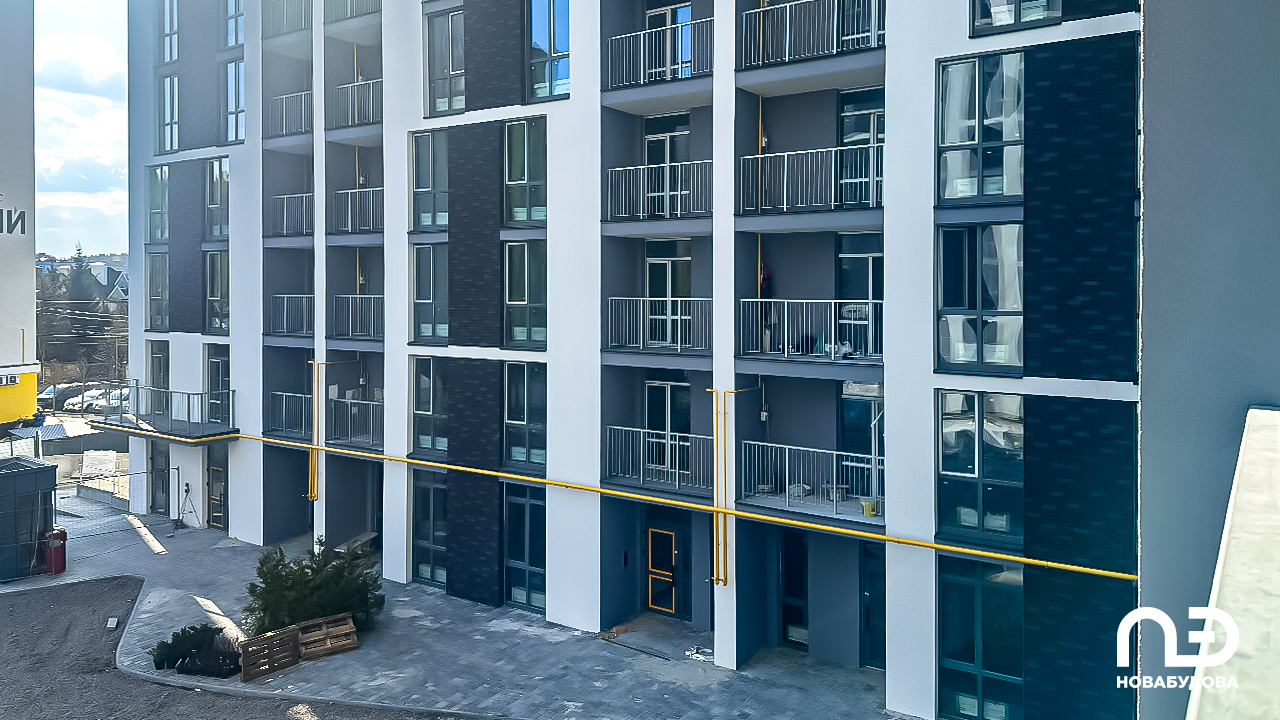 • тривають фасадні роботи (готово на 90%), монтаж систем теплопостачання й водопостачання (готово на 60%), стяжка підлоги (готово на 60%), облаштування перильних огороджень (готово на 70%), монтаж технічних дверей (готово на 80%), облаштування пожежних систем (готово на 95%), електромонтажні роботи (готово на 80%), монтаж квартирних дверей (готово на 40%), оздоблювальні роботи (готово на 10%).