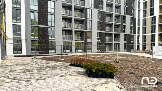 У третій секції завершено монтаж віконних конструкцій. Тривають фасадні роботи (готово на 75%), монтаж систем теплопостачання й водопостачання, стяжка підлоги (готово на 30%), облаштування перильних огороджень (готово на 20%), монтаж технічних дверей, облаштування пожежних систем (готово на 45%). Розпочато електромонтажні роботи, підготовку до монтажу квартирних дверей, підготовку до оздоблювальних робіт.